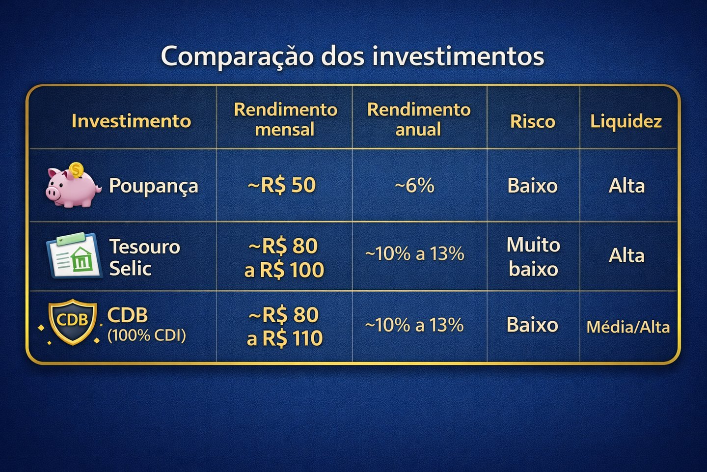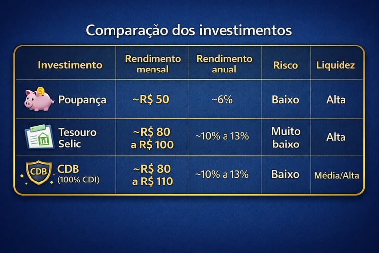 Descubra quanto rende 10 mil investidos na poupança, Tesouro Selic e CDB. Veja simulações reais, rendimento mensal e anual e entenda qual investimento vale mais a pena para começar.